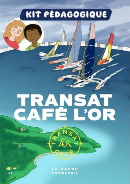 Transat Café l’Or 2025 : dernière commande livrée ! Pour la deuxième édition consécutive, j’ai le plaisir d’illustrer le kit pédagogique de la course transatlantique Havraise trentenaire (32 ans, exactement) ! Le kit a pour vocation de transmettre au jeune public des infos, anecdotes et jeux relatifs à tout ce qu’implique cette régate en duo : les territoires qu’elle relie, la vie à bord, les éléments naturels etc. Cliquez sur l’image pour télécharger le kit ici, ou retrouvez le sur le site de la course !